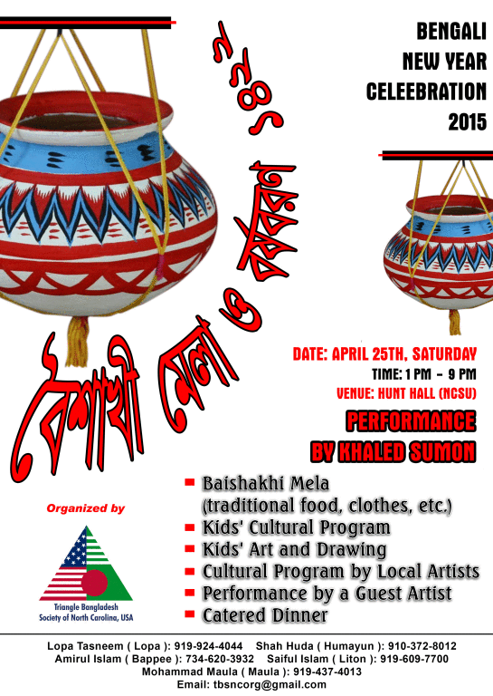 Eid Anondomela 2016 to be celebrated on July 30th Saturday from 5 PM - 10 PM at the Cary Senior Center, 120 Maury Odell Place, Cary.